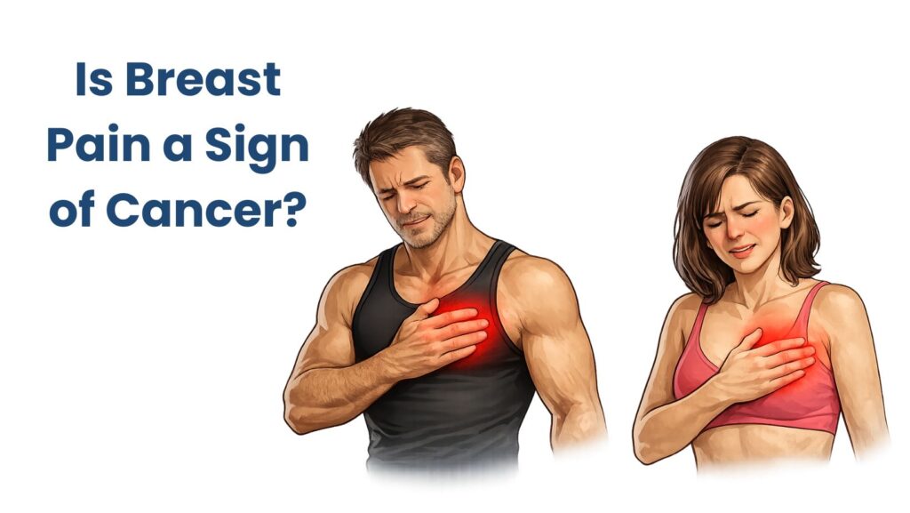 According to the NHS, breast pain on its own is rarely a sign of breast cancer. Most cases are linked to hormonal changes or benign conditions.